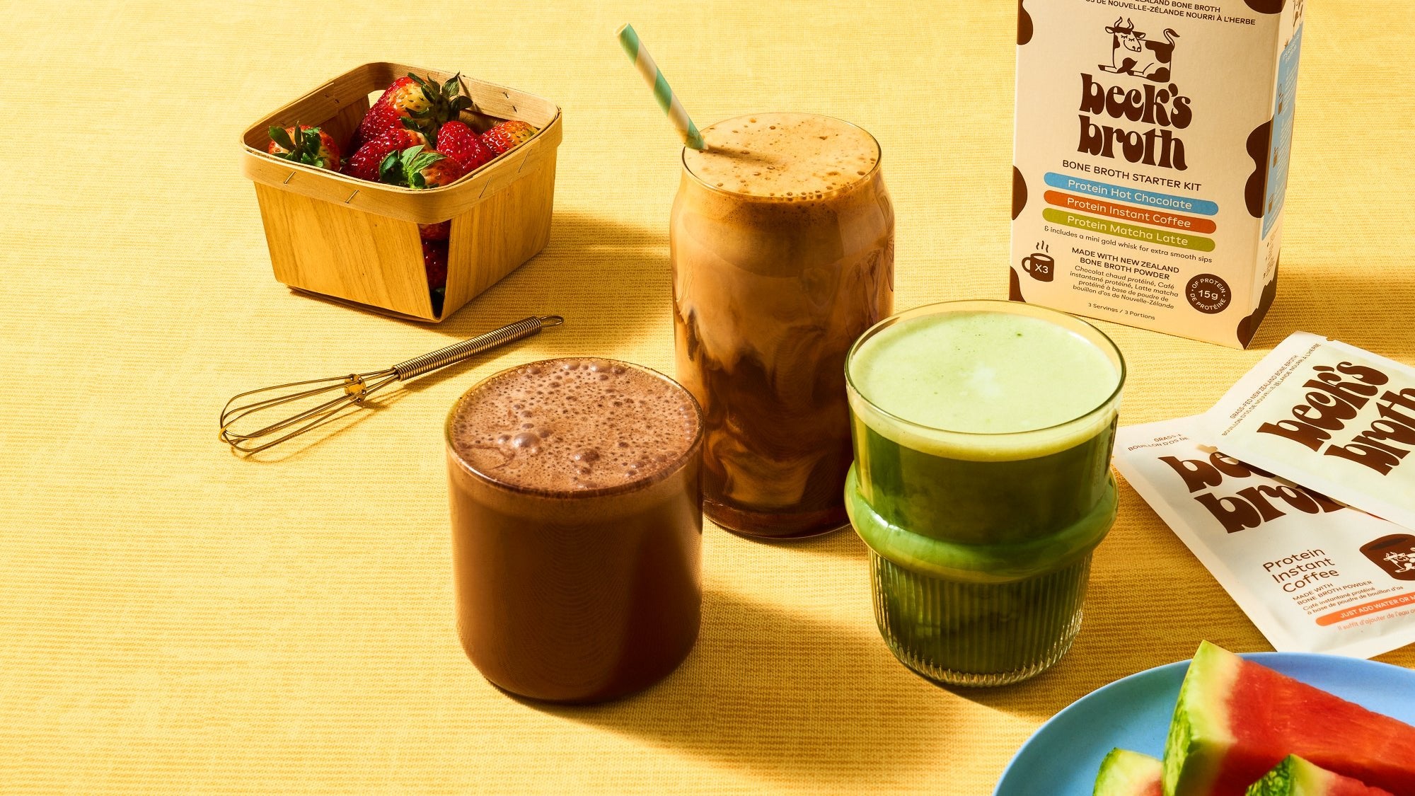 Whether you’re looking to satisfy your sweet tooth, elevate your energy, or nourish your body, this curated trio is the perfect introduction to our best-selling bone broth blends. Each kit includes one sachet each of our Protein Hot Chocolate, Protein Matcha Latte, and Protein Instant Coffee, plus a mini gold whisk for the ultimate frothy finish.